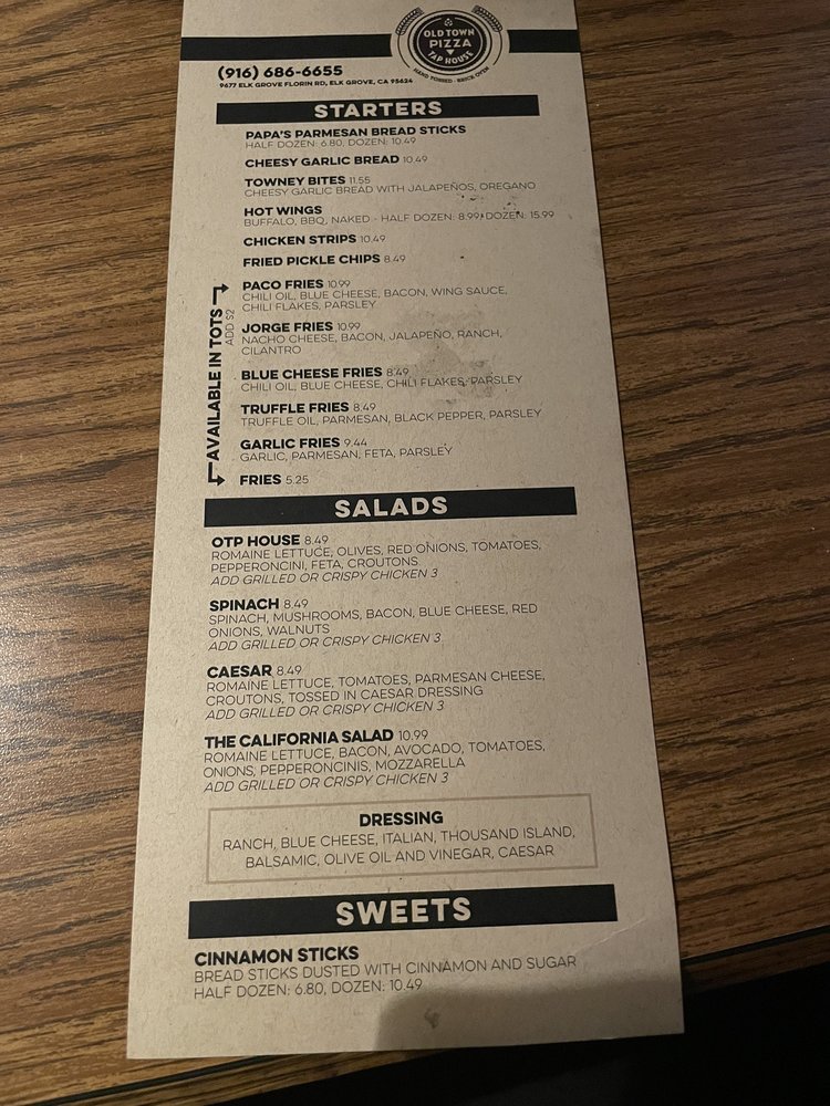 Introducing Old Town Pizza & Tap House, a local favorite in Elk Grove, California. This casual, family-friendly restaurant offers a wide variety of pizzas, sides, salads, and more. Customers rave about the fresh ingredients and the well-crafted pizzas, with options for vegetarians as well. The menu also includes delicious sides like wings, tater tots, and cheesy bread. The ambiance is described as cool and welcoming, perfect for a simple date night or a family gathering. Many customers praise the friendly staff and the great selection of on-tap beers. Overall, Old Town Pizza & Tap House is a must-visit spot for those craving top-notch pizza and a fun dining experience.